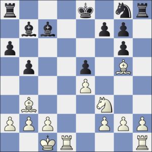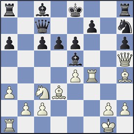 Valkea on saanut mustan kannalta kiusallisen hieronta-aseman, mutta 18.-Dxd4 19.Txd4 Re6:n jälkeen mustalla olisi edelleen aivan kelvolliset puolustusmahdollisuudet. Pelissä tapahtunut 18.-Lxe4 johti kuitenkin heti alamäkeen jatkossa 19.Dxb6! axb6 20.Lxe4. Valkea voitti sotilaan ja kuittasi pisteen vakuuttavasti 49 siirrossa.