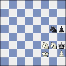 58.-f3 ei myöskään auttaisi asiaa, sillä yksinkertaisesti 59.gxf3 ja valkea voittaa helposti. Ei tarvitsisi esittää edes osaamista daami vastaan torni -loppupelissä. Voi olla, että palstan kirjoittajakin siis selviäisi tässä pelin voittajana.