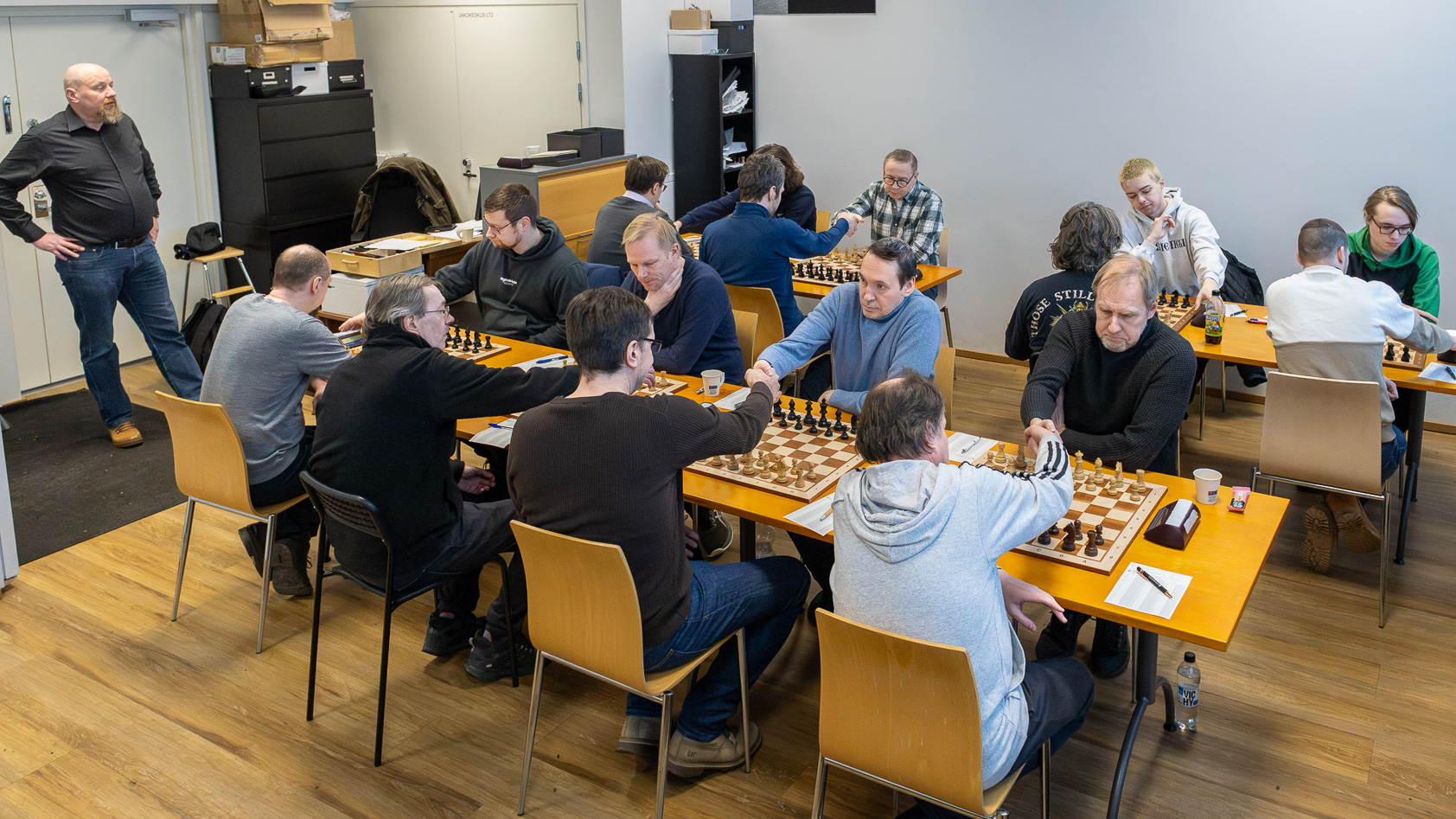 FM Petri Lehtivaara ja shakkimestari Aleksi Wallin päätyivät pistejakoon melko loogisten tapahtumien päätteeksi, mutta Lauri Mäkelän ja shakkimestari Sauli Tiitan peli päättyi valkeilla pelanneen Mäkelän kannalta tylysti.