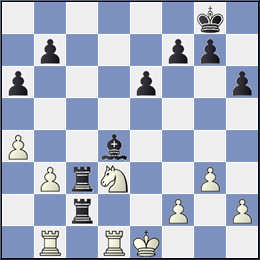 Valkea pelasi nyt 35.Re6?? ja kamppailu päättyi tasan siirtojen 35.-Lxc2+?? 36.Dxc2 Dxc2+ 37.Kxc2 Txe6 jälkeen.