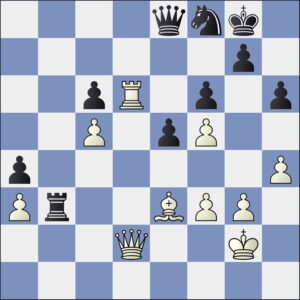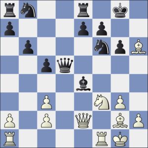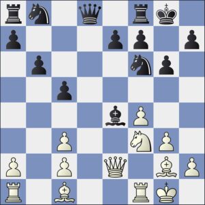 Nevanlinna pelasi tässä luonnollisen 17.Lxf7+:n ja tätä asemaa katsoessa mustan selviytyminen ei kyllä kovin todennäköiseltä vaikuta. Nieminen kuitenkin jatkoi sinnikkäästi taistelua ja niin vain hän itsensä tasa-asemaan kampesi.